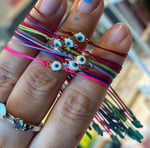 I make this bracelet with double thread, seed beads, sterling silver connector and a macrame closure to adjust any size.