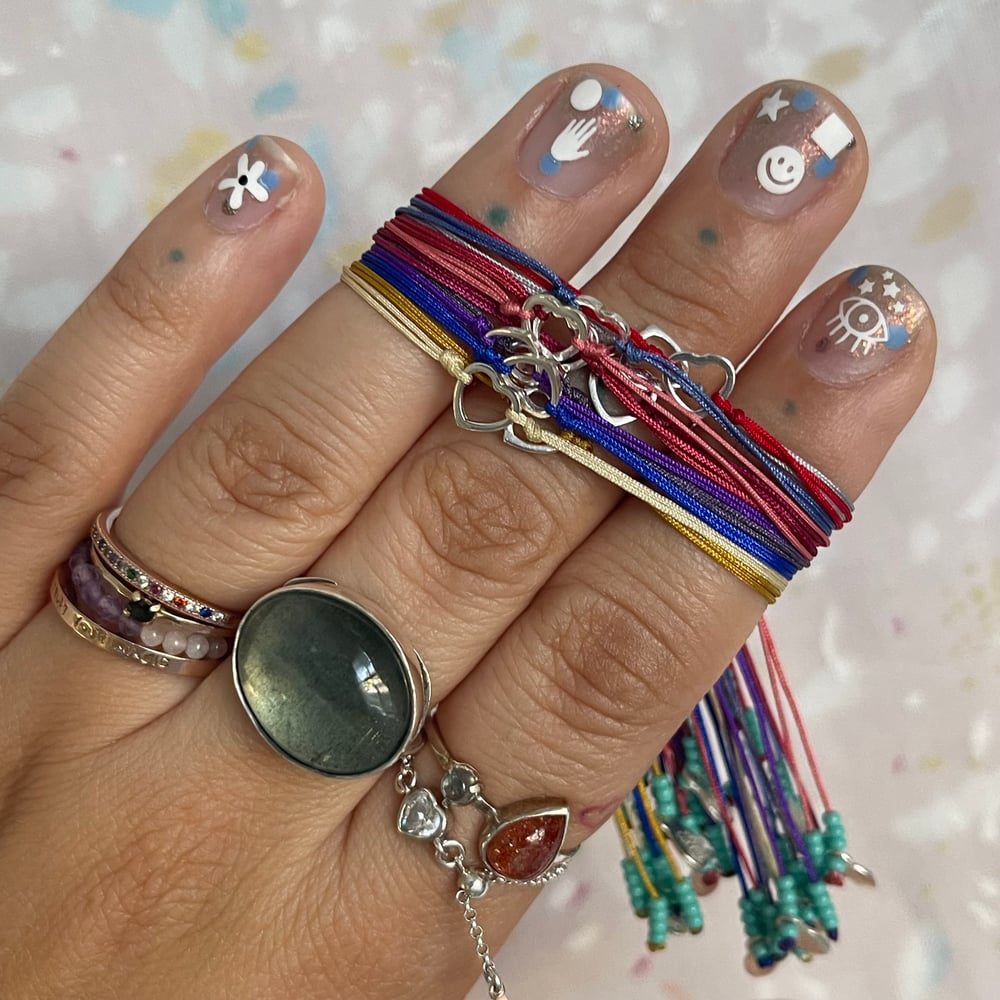 We make this bracelet with double thread, seed beads, sterling silver handmade heart charm and a macrame closure to adjust any size.
