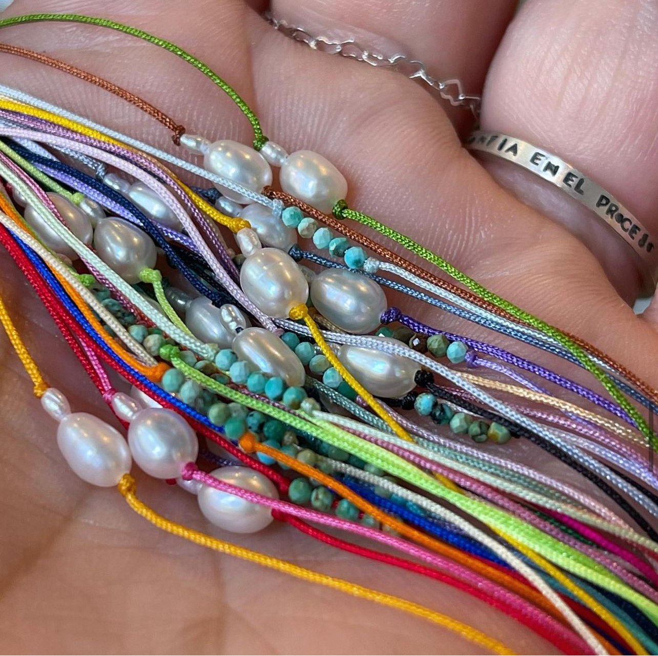 Turquoise and pearl bracelet